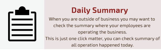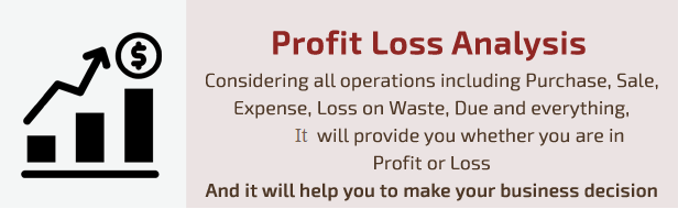 Our Report module gives you more than 15 reports to check your business status and make your besiness decision. Our report includes: Daily Summary Report, Inventory Report, Tax Report, Supplier Report, Supplier Due Report, Profit Loss Report, Sale Report by Month, Sale Report by Date, Food Menu Sales, Detailed Sale Report, Pur. Report by Month, Pur. Report by Date, Pur. Report by Ingredient, Detailed Pur. Report, Expense Report, Waste Report
