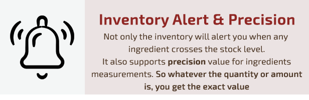 FoodPel maintains seperate modules for Ingredient and Recipe and Ingredient's consumptions for a Recipe. You purchase Ingredient and sale Recipe, FoodPel automatically calculates Ingredient inventory. This way reduces lot of your work!